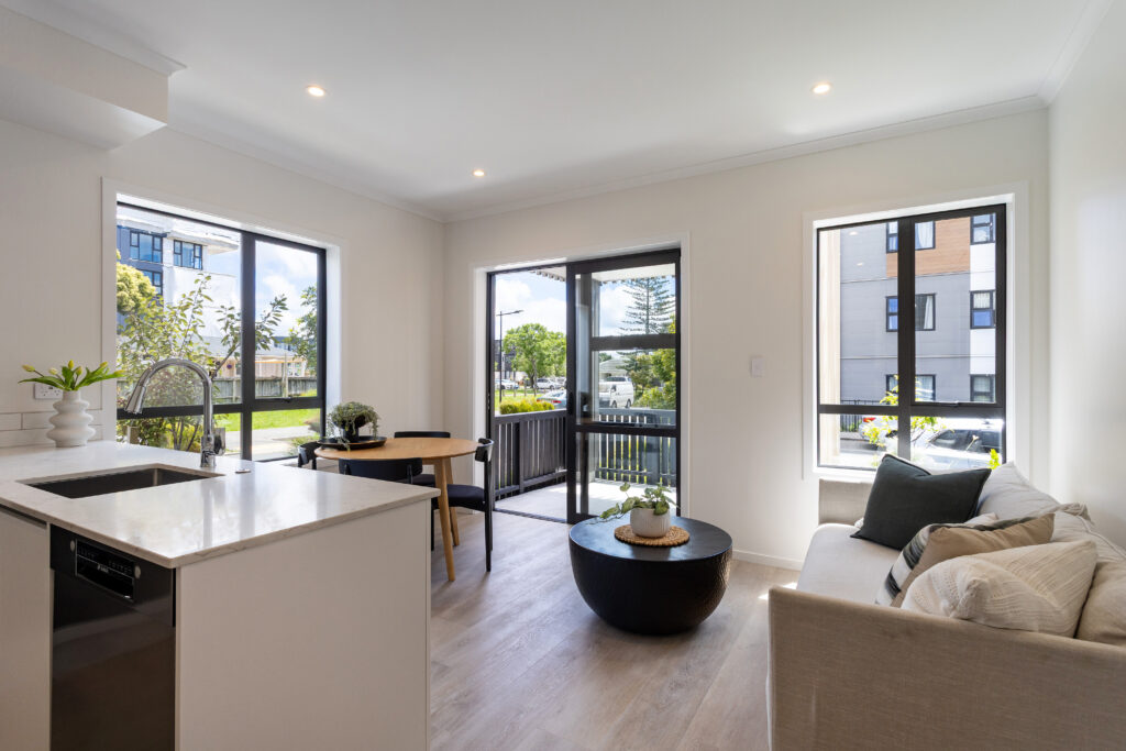 First home buyer? Mahana Apartments are the smart, affordable choice for your first home. Offering outstanding value for money, these architecturally designed apartments are light, airy, and incredibly well-built, situated in desirable Northcote on Auckland’s North Shore.