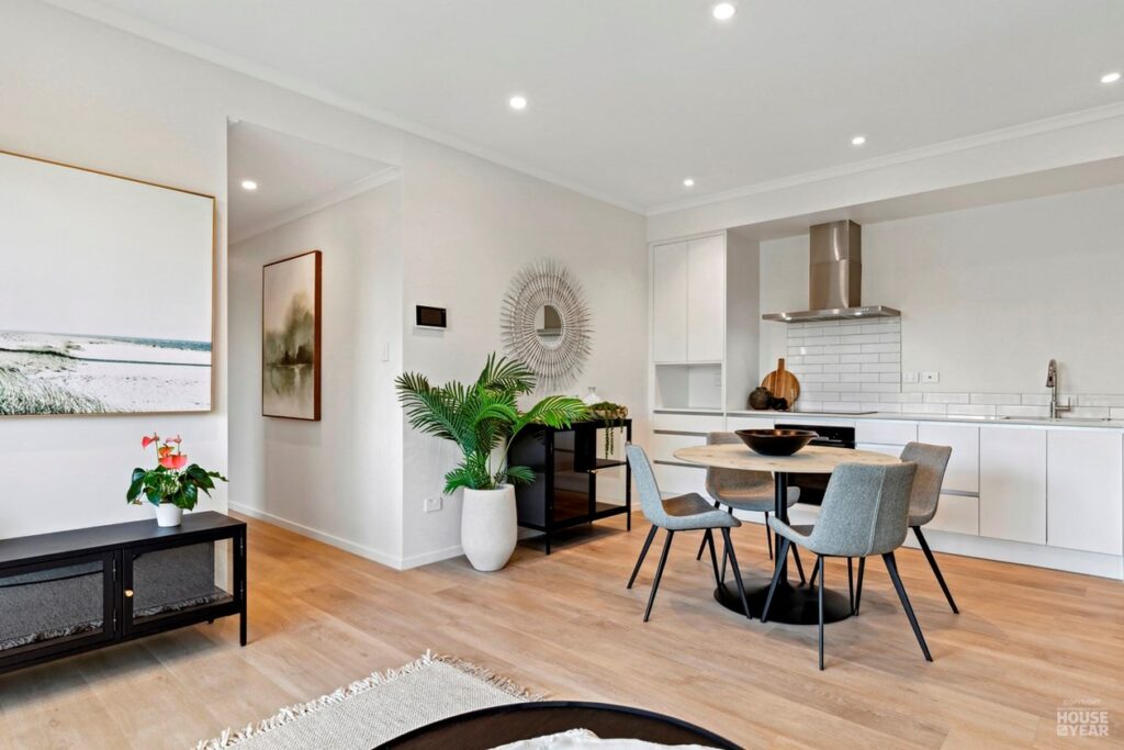 Second level walk up apartment, open plan living – kitchen with Bosch appliances, dining and lounge, enclosed private balcony. Daikin heat pump, double glazing and high quality fixtures and fittings.