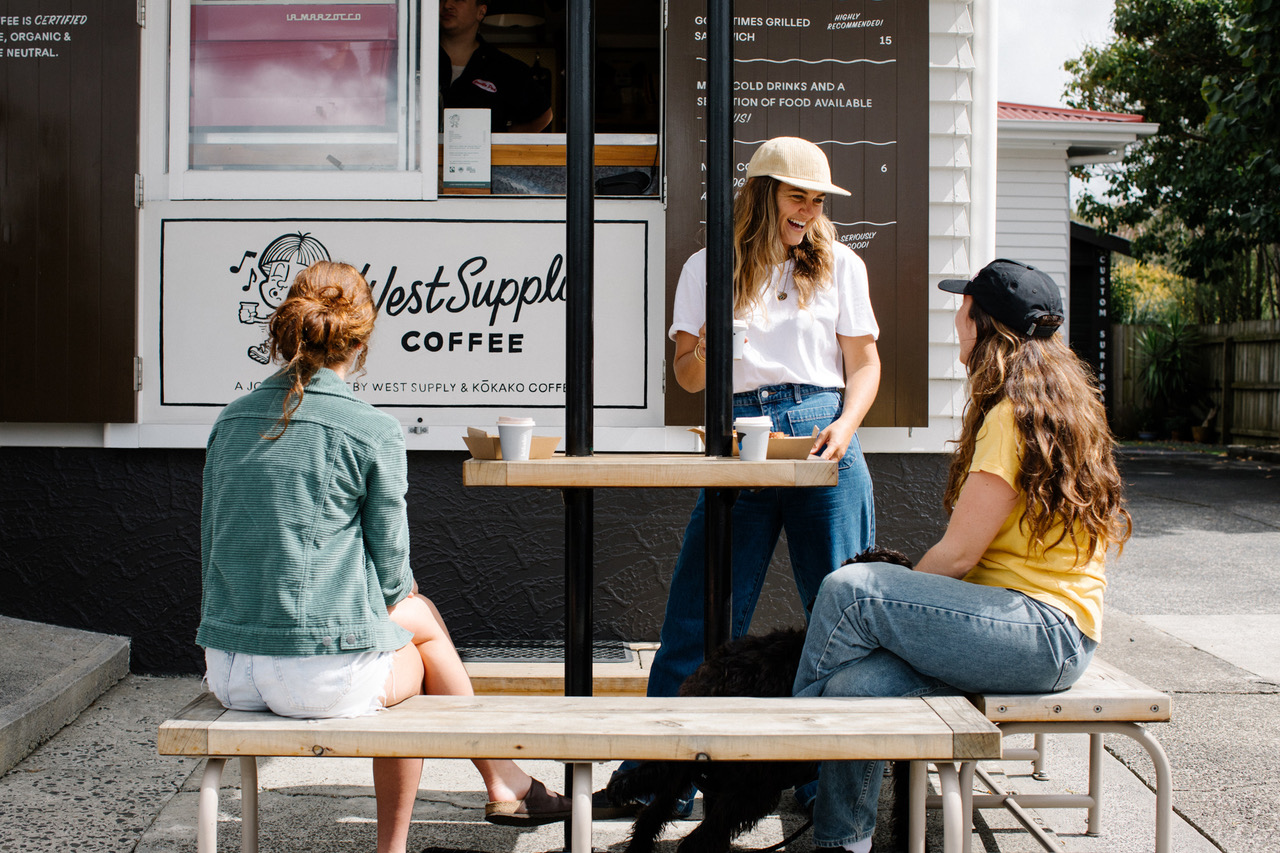 The service window at West Supply Coffee is open for a delicious cup of java and some seriously good food during the week, including weekends. There are tables out the front to enjoy a bite and have a yarn. West Supply stocks Kokako coffee, and other moreish bites. Don’t go past the world famous (out west, anyway) grilled sandwiches.